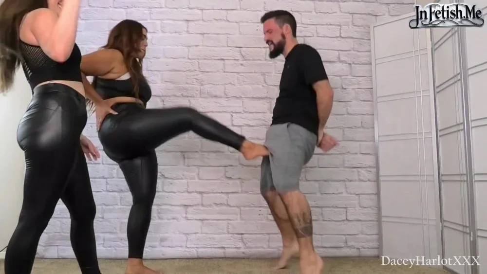Feat. Dacey Harlot, Scarlett Venom, & Dexter Darkly This is Scarlett Venom's 1st time kicking someone in the balls and she is a total natural! Dacey runs Scarlett through some of the Ballbusting Basics kicks, stomps, punches, knees, ect! She catches on quickly and the girls have a blast sadistically pummeling him with CBT of all forms. Dacey teaches her the ways of intense ballbusting and CBT in this intense clip! By the end Scarlett is ready to take on pathetic losers all over without a drop of mercy, their poor victim barely there as they leave him in a ball on the floor, laughing as they exit to continue their day of CBT activities.