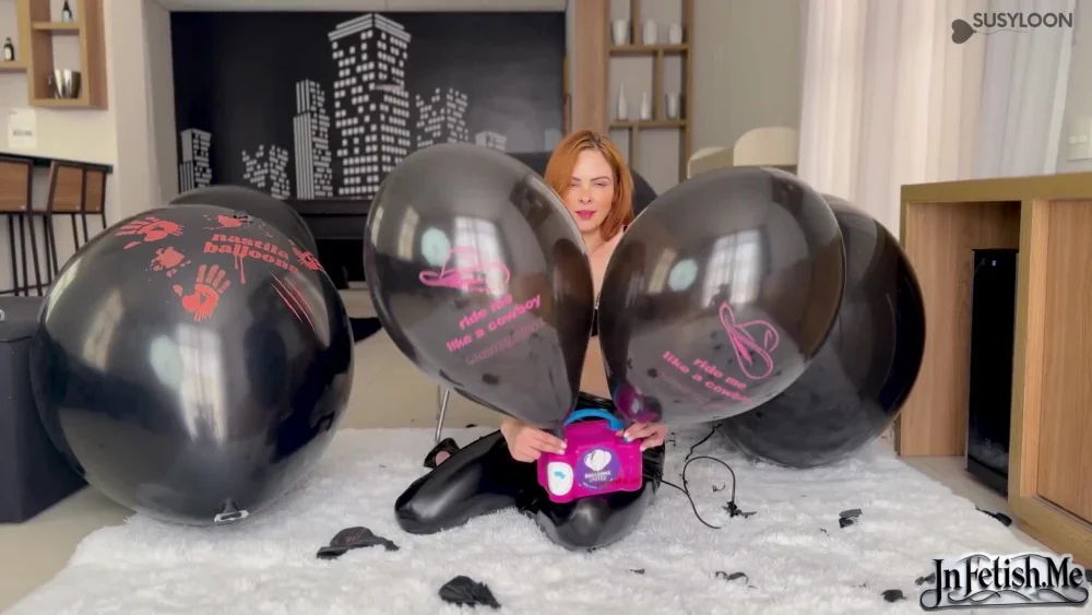 I've got a collection of black balloons from Looner Zone, Airfx and Nastilla and an outfit to match. There is something I love about black balloons, they have a different feel and smell and I love the sound they make when they burst and that they reflect me back as I blow them.I start with a huge b2p that gets my heart racing and my popping urges switched on. I b2p, pump to pop, sit on them with my black pants, stomp them with my black heels until all that remains are there black shreds all over the floor. It feels good to be bad with my black balloons.