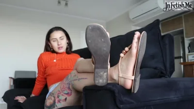 Mistress Rave Girl is back with her beautiful, soft feet.I made an appointment with her to come to my apartment so I could love those beautiful feet again.She arrived in denim shorts and an orange blouse, looking very sexy.She sat down on the sofa, took off her sandals and started showing off her beautiful feet with nude painted toenails for the camera.I get down on my knees and start worshiping her with those beautiful feet of hers and start kissing and licking her feet a lot.In her footjobs she shows how much her foot skills have improved and she wanted to try new positions and that got me even more excited.check out