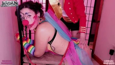 Riley and Chibi are sitting in their room, talking about going to the circus. Chibi says she doesn't go to them because she's afraid of clowns. Riley presses her to tell her why, and a Chibi flashback happens! Chibi is a shy little clown being held in bondage by Riley the fem dom Ringmaster. Riley paints Chibis face, slaps her around, whips and paddles her, fucks her sloppy face with a confetti dildo, and puts a huge fidget spinner butt plug in her ass. All the while Chibi is crying and Riley is tormenting and mocking her. Release date December 03, 2023 Dur: 00:09:57 | Size: 594.17 MB